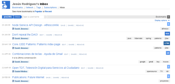 - Suscripción: puedes seguir las etiquetas que quieras, y recibirás avisos cuando alguien los utilice para marcar una web.
