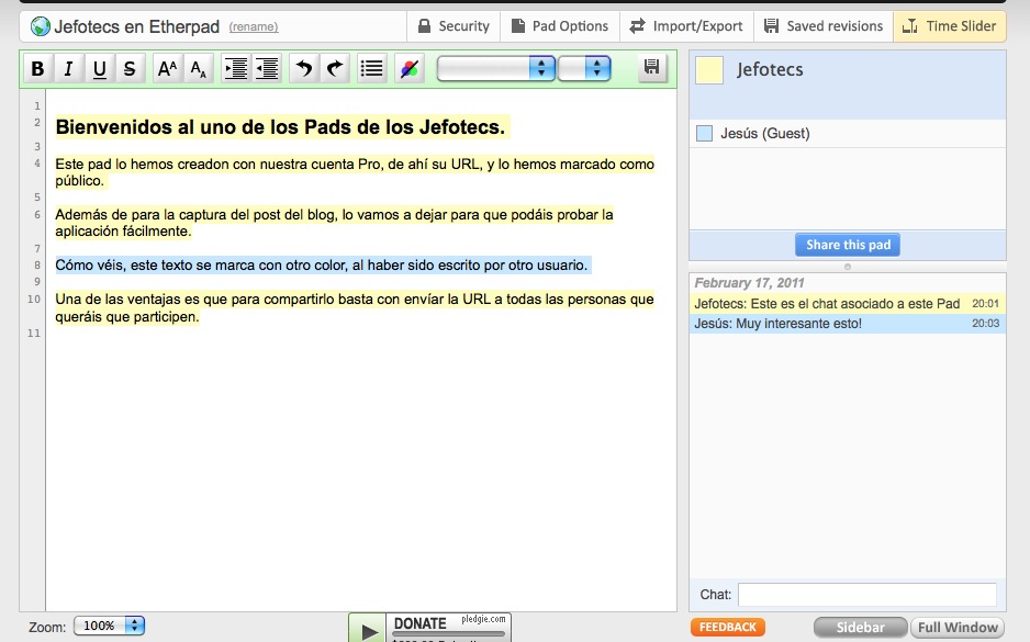 Etherpad: sencilla edición colaborativa y en tiempo real