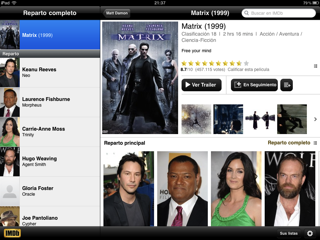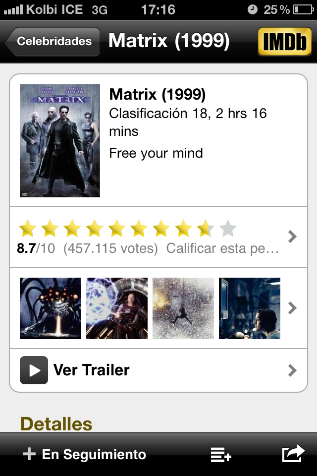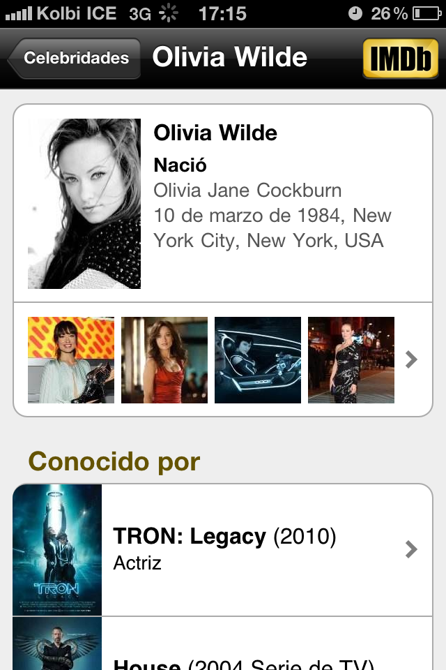 Desde que me pasé a los smartphones a principios de 2009 siempre he utilizado la misma aplicación como ejemplo de aplicación desarrollada para dispositivo móvil que me gusta: la de IMDb.