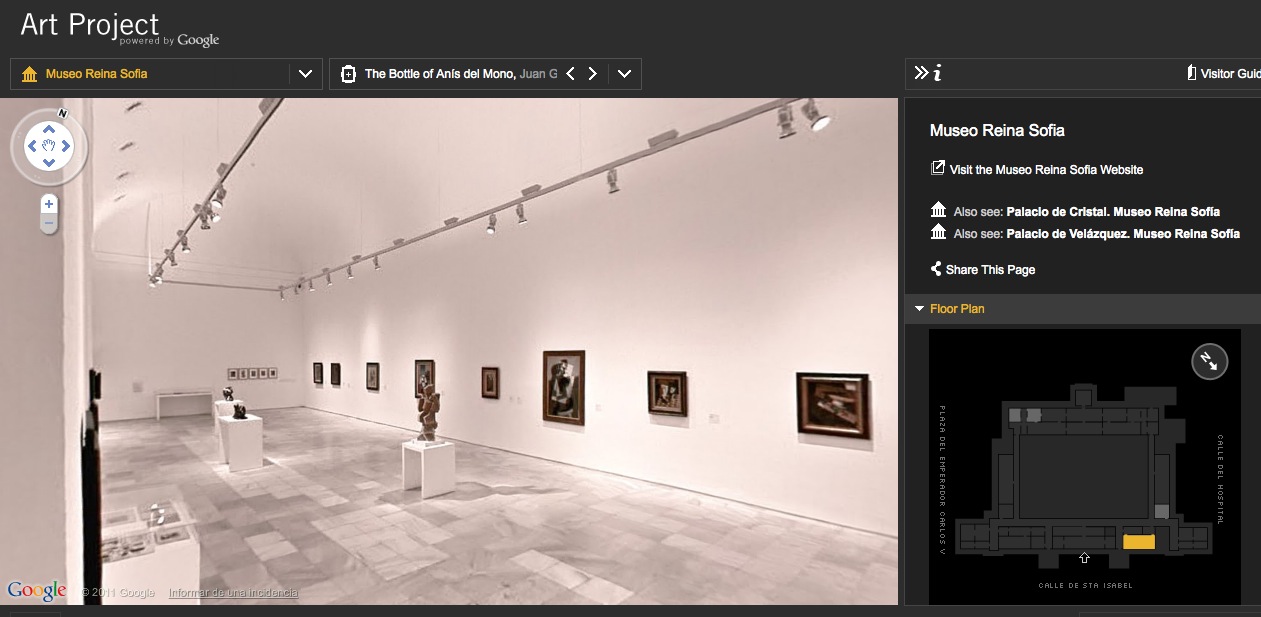 Actualmente puede hacerse una visita virtual a todos ellos a través de Google Art Project. En la siguiente caputra se puede ver una de las galerías del Museo Reína Sofía de Madrid: